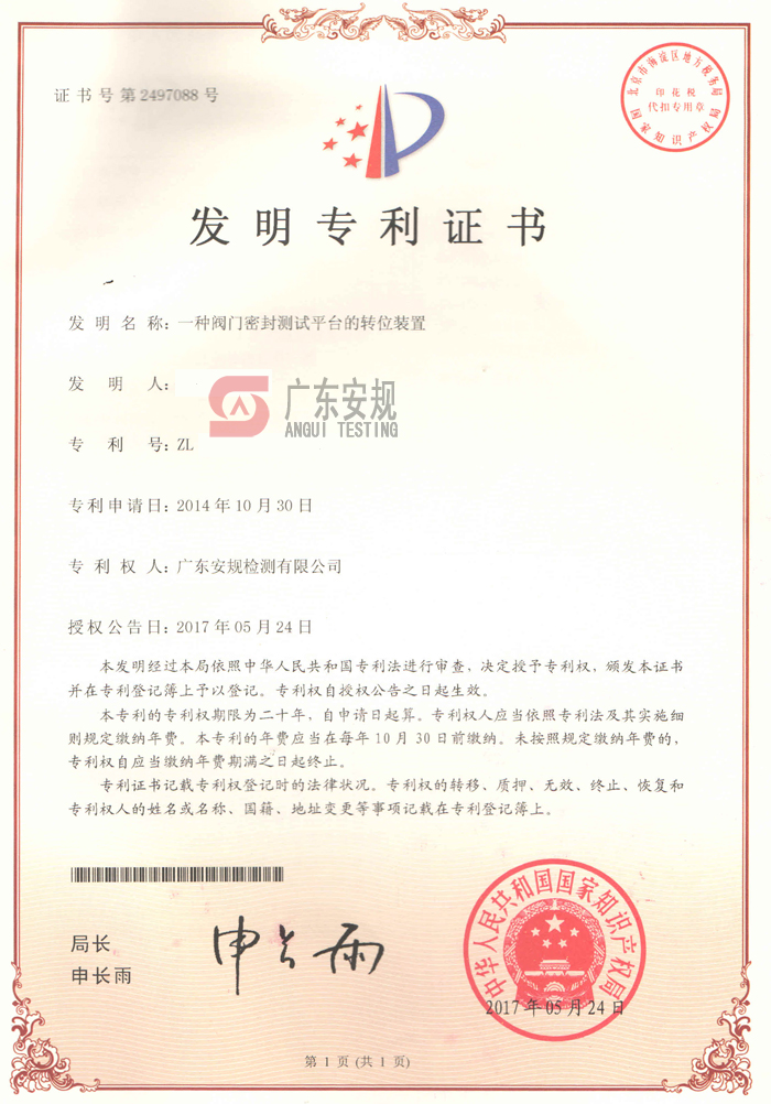 发明专利——密封测试平台