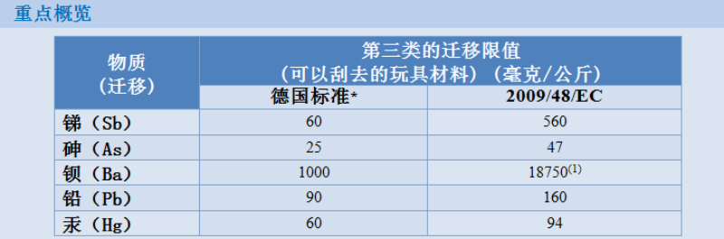 根据2012/160/EU,欧盟批准德国的部分要求,保留玩具中其现有铅和钡的限值, 直至实施欧盟或于2013年7月21日(以先到者为准)所设置的新限值。