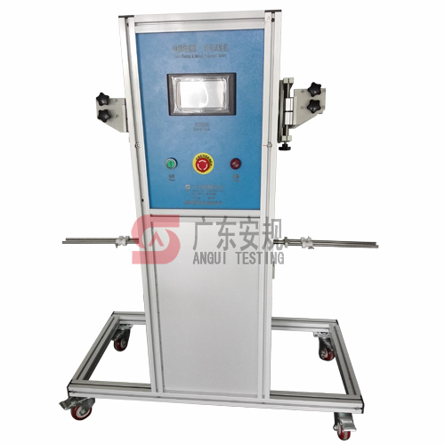 把测试样品包括人口部分固定到摆动件上,当电源软线处于其行程中点时,进人软线保护装置或入口处的软线的轴线处于垂直状态,且通过摆动件的轴线。扁平软线截面的主轴线应与摆动轴线平行。