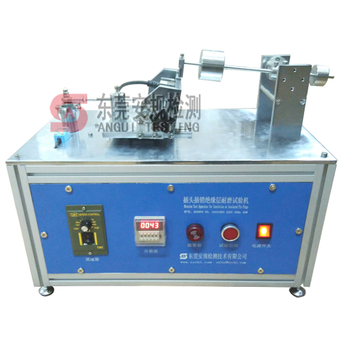 AS/NZS3112插头插销绝缘层耐磨试验机又名端子绝缘层耐磨试验机,是广东安规根据标准AS/NZS3112第2.13.13.6节|图2.7/IEC60884第24.7节及图28/GB2099.1第24.7节及图28要求设计而成。